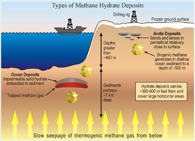 The snow-like hydrate can be packed into cubes and loaded into the refrigerated ships, boxcars, and trucks now used to ship frozen food at minus 10 degrees centigrade (C). That temperature is far easier and cheaper to manage than the minus 162-degree C required for LNG. Also, if LNG shipping containers are damaged, the methane can quickly vaporize and explode. Taylor says that while the methane hydrate can burn, the methane is released slowly enough that itโs not explosive. (If a shipping container were damaged and the hydrates melted, the methane would escape slowly and dissipate before it reached explosive levels. There would be a danger of explosion if the methane were allowed to accumulate in a confined space.) When the hydrate reaches its destination, the methane can be released by letting it warm to room temperature.