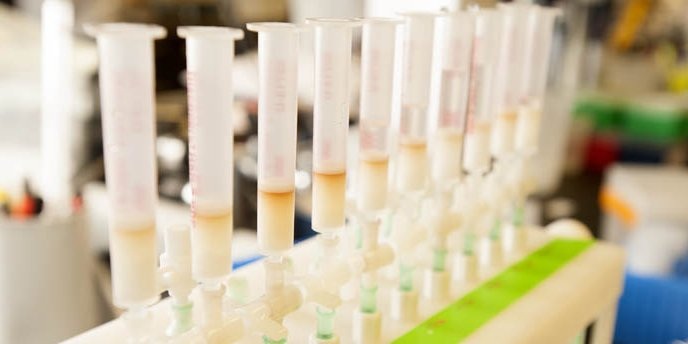 Samples of bovine milk are ready for analysis in the Daniela Barile Food Science Laboratory at UC Davis. (Gregory Urquiaga/UC Davis)