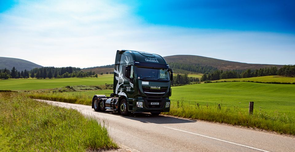 Whiskey Residue Powering Fleet –ย Glenfiddich is leading a sustainability initiative to address the Scotch Whisky Associationโs climate change targets… (View of the Glenfiddich truck, that runs on whiskey-by-product based biogas, in Dufftown, Scotland, Britain. Courtesy of William Grant & Sons/Handout via REUTERS)