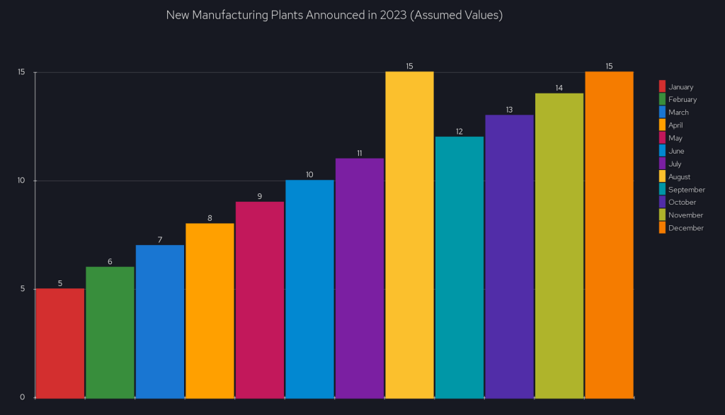 Manufacturers are showcasing resilience, adapting to market conditions and leveraging technological advancements. – Graph Showing New Manufacturing Plants Announced in 2023 (Assumed Values)